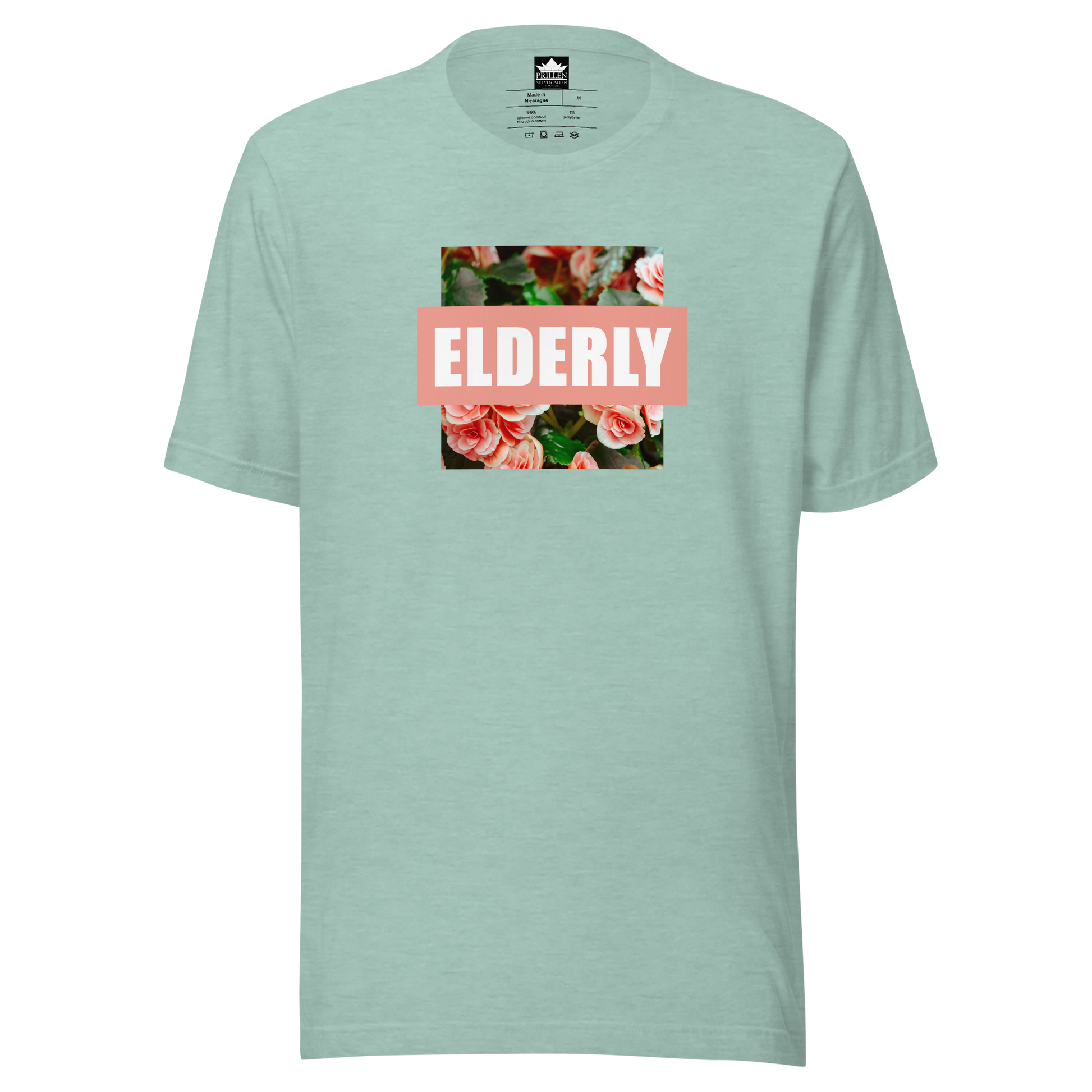 This t-shirt is soft, lightweight, comfortable and flattering, with the right amount of stretch for both men and women—good old funny joke meme birthday, holiday, gift or present idea great for students, family, friends, dads, moms, grandmothers, grandfathers, sons, and daughters to show age does not matter on a bed of flowers