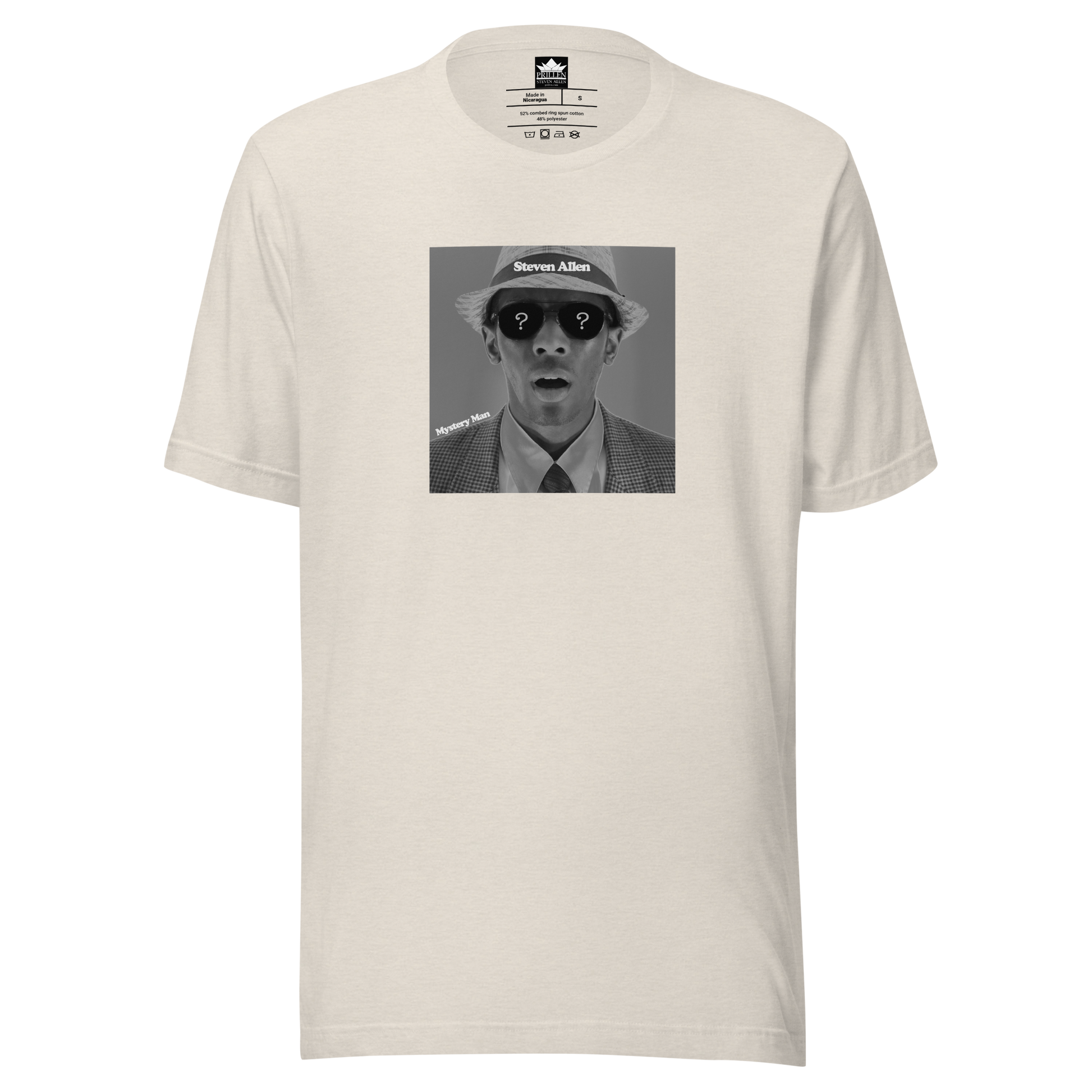 This t-shirt is soft, lightweight, comfortable and flattering, with the right amount of stretch for both men and women—good birthday, holiday, gift or present idea great for students, family, friends, dads, moms, grandmothers, grandfathers, sons, and daughters to show people you like music and Steven Allen songs - Mystery Man