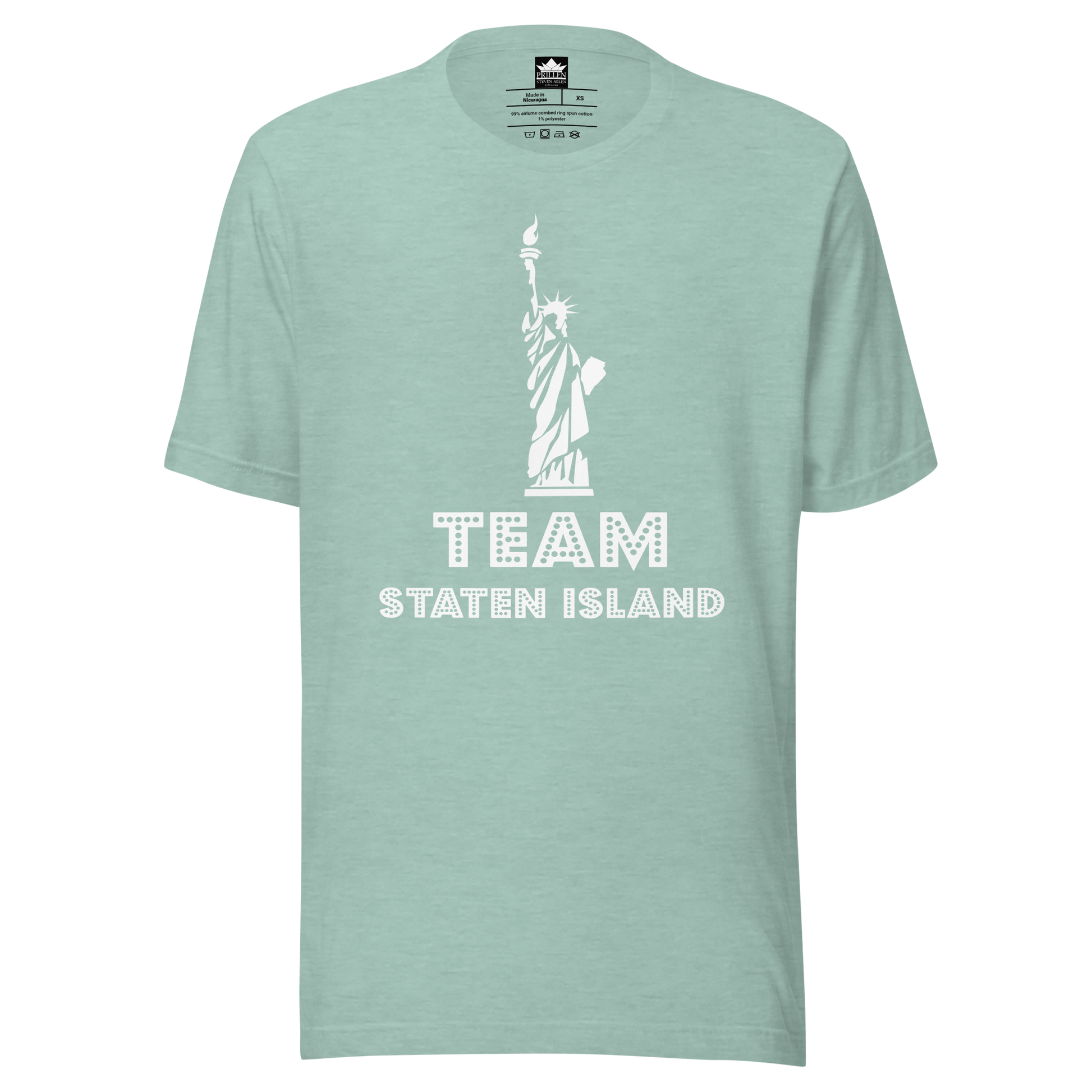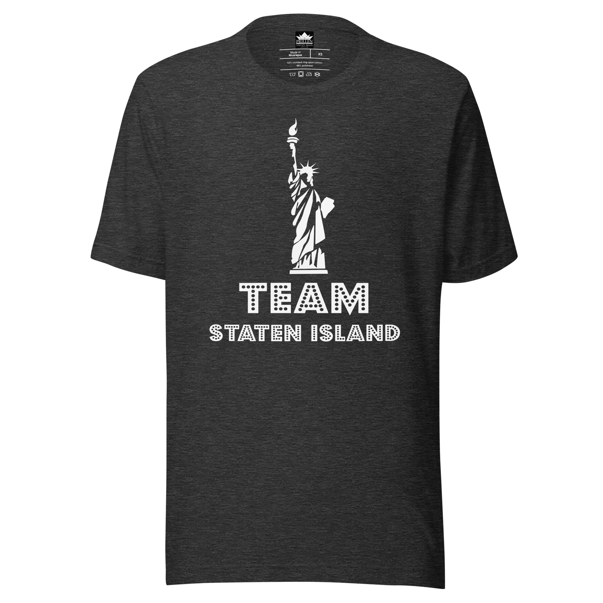 This t-shirt is soft, lightweight, comfortable and flattering, with the right amount of stretch for both men and women—good birthday, holiday, gift or present idea great for students, family, friends, dads, moms, grandmothers, grandfathers, sons, and daughters to tell people you like NYC, The Statue of Liberty, and its boroughs - New York City - Manhattan - Brooklyn - The Bronx - Queens - Staten Island